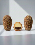 Thanksgiving Special! Our classic brown butter madeleine, filled by Holiday-special fillings: a lightly spiced chai creme patissiere and a home-made pecan praline. The combo is warm, ideal to surprise your Thanksgiving guests with a unique twist on the classic Pecan Pie!